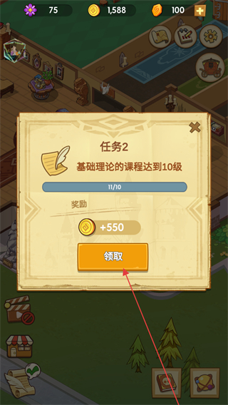 1、點擊任務2彈窗中的去完成按鈕,接取基礎理論的課程達到10級的任務。