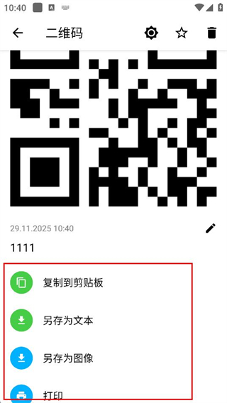 4、在生成的二維碼頁(yè)面,可選擇復(fù)制到剪貼板-另存為文本等功能進(jìn)行后續(xù)操作。