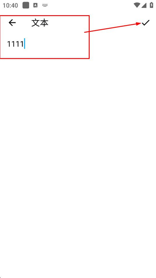 3、在文本頁(yè)面,輸入目標(biāo)內(nèi)容后,點(diǎn)擊右上角的對(duì)勾,生成對(duì)應(yīng)文本的二維碼。