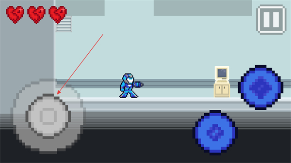 1、進入機器人大軍游戲地圖后,通過左下角的輪盤控制機器人的移動。