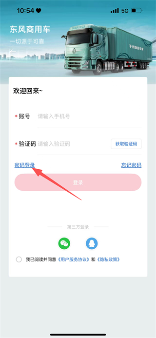 3、隨后我們可以在登錄頁面,點擊密碼登錄,切換至密碼登錄模式。