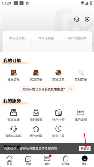 2、在個人中心頁面點擊去登錄,進入登錄注冊的選擇頁面。