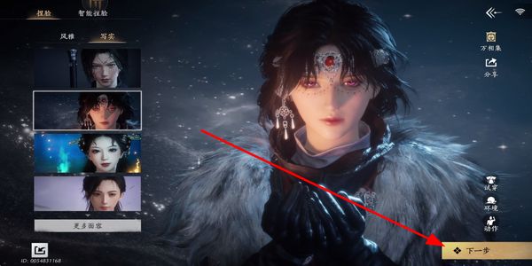 1、玩家在捏臉界面選擇喜歡的面容樣式,完成角色外觀設(shè)置后點(diǎn)擊下一步,進(jìn)入燕云游戲世界。