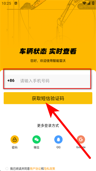 3、在登錄頁面,輸入手機號碼,點擊獲取短信驗證碼。