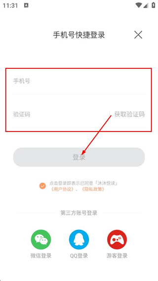 3、在登錄頁面,輸入手機(jī)號填寫驗證碼后,再點擊登錄,完成賬號登錄操作。