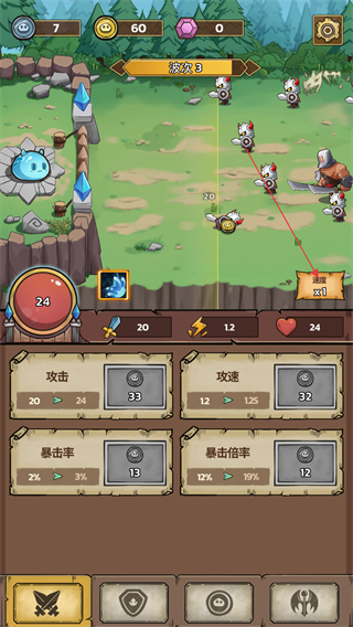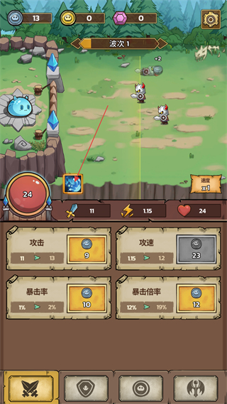 4、點(diǎn)擊右側(cè)的速度按鈕,可以調(diào)節(jié)怪物入侵的速度并加快史萊姆的攻擊速度。