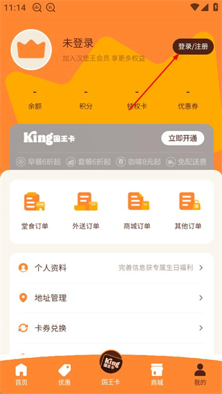 1、在漢堡王中國的首頁,點(diǎn)擊底部的我的選項(xiàng),進(jìn)入個(gè)人中心頁面。