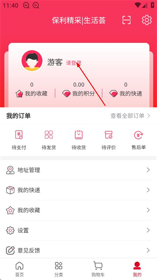 2、在個人中心頁面,點擊請登錄區(qū)域,進入登錄頁面。