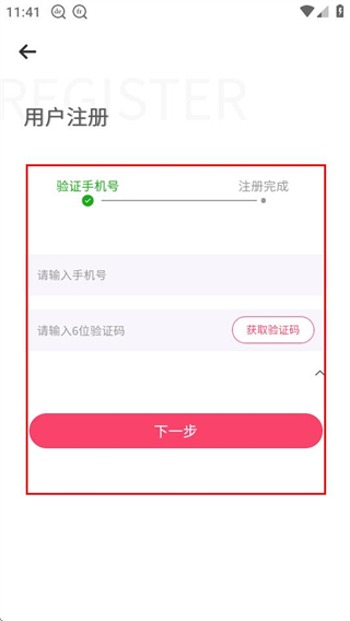 4、在注冊頁面,填寫信息,輸入后點擊下一步完成注冊流程。