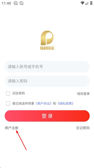 3、在登錄頁面,點擊用戶注冊選項,進入用戶注冊頁面。