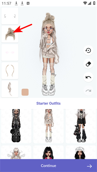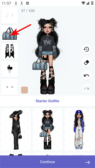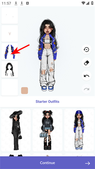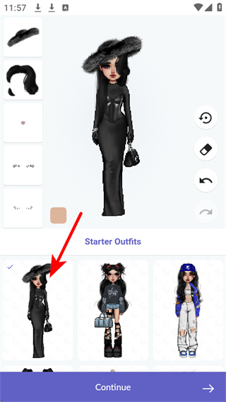 1、點(diǎn)擊Starter Outfits區(qū)域下的套裝選項(xiàng),可快速切換對應(yīng)的穿搭造型,完成基礎(chǔ)裝扮選擇。