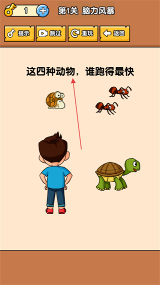 1、點(diǎn)擊開始游戲按鈕,進(jìn)入第1關(guān)腦力風(fēng)暴關(guān)卡。