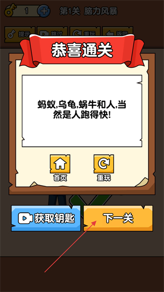 4、通關(guān)后點(diǎn)擊下一關(guān)按鈕,繼續(xù)挑戰(zhàn)后續(xù)關(guān)卡。