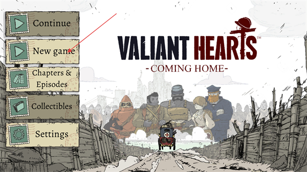 1、打開(kāi)勇敢的心2歸鄉(xiāng)游戲,點(diǎn)擊主頁(yè)第二個(gè)選項(xiàng)Newgame開(kāi)始冒險(xiǎn)之旅。