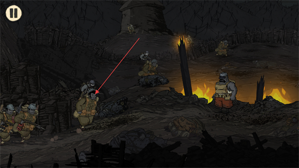 2、滑動(dòng)屏幕空白區(qū)域控制角色前進(jìn),路過(guò)戰(zhàn)友時(shí)會(huì)進(jìn)行拉攏一起前進(jìn)。