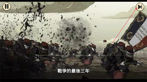 4、進(jìn)入下一關(guān)之前需要觀看一段游戲背景故事,點(diǎn)擊右上角按鈕可以跳過(guò)這段動(dòng)畫(huà)。
