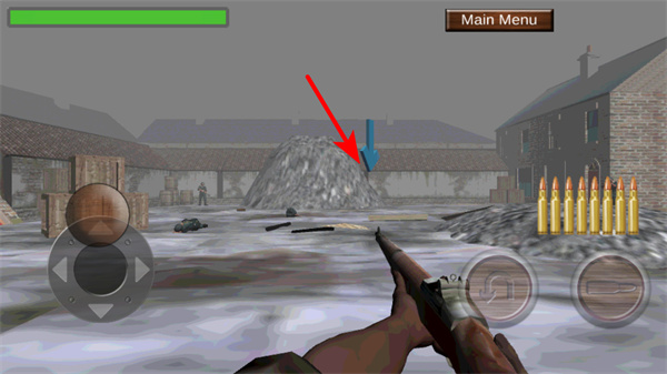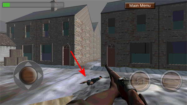3、緊跟紅色箭頭指引,在敵人倒地后繼續(xù)調(diào)整視角,搜尋場(chǎng)景中剩余的敵方單位。