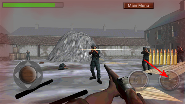 4、當(dāng)多名敵人出現(xiàn)時(shí),持續(xù)點(diǎn)擊射擊按鈕,依次攻擊目標(biāo),清理戰(zhàn)場(chǎng)完成戰(zhàn)斗目標(biāo)。