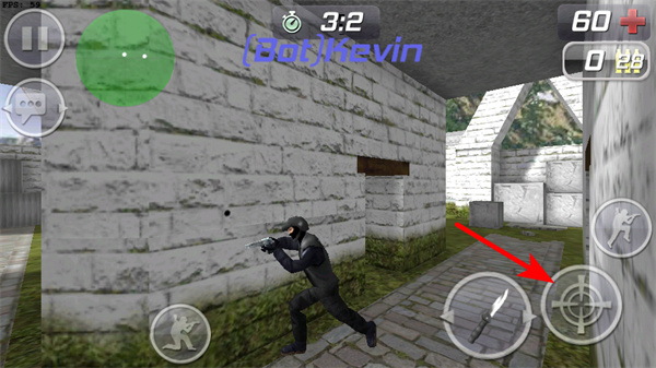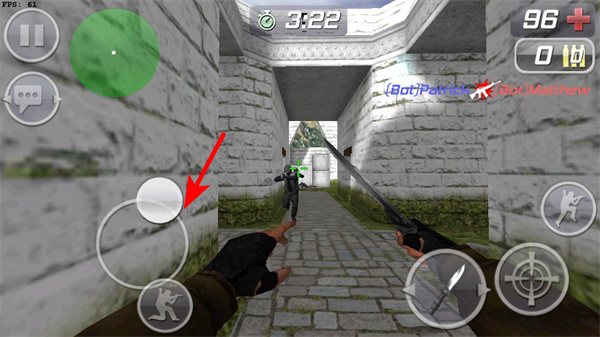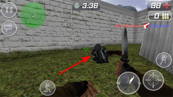 4、點(diǎn)擊移動(dòng)按鈕調(diào)整位置,靠近遠(yuǎn)處的敵方目標(biāo),利用近戰(zhàn)武器發(fā)起近身攻擊。