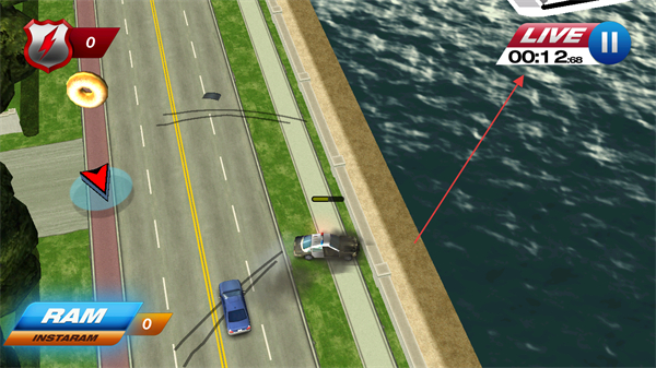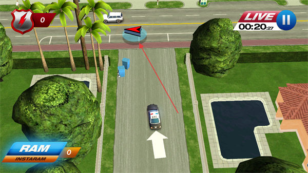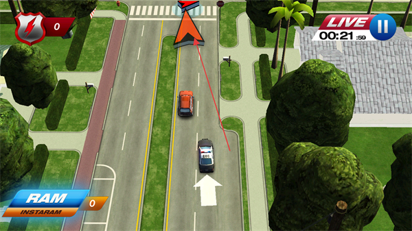 2、駕駛警車追趕橙色目標(biāo)車輛,沿道路保持追蹤。