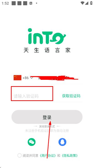 3、在登錄頁(yè)面的輸入框中填寫(xiě)收到的驗(yàn)證碼,完成賬號(hào)的登錄操作。