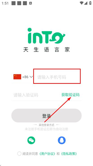 2、在登錄頁(yè)面填寫(xiě)手機(jī)號(hào),勾選協(xié)議后,點(diǎn)擊獲取驗(yàn)證碼。