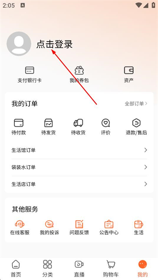 2、隨后我們可以在我的頁(yè)面,點(diǎn)擊點(diǎn)擊登錄,進(jìn)入登錄頁(yè)面。