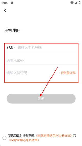 4、輸入手機(jī)號(hào)碼跟密碼,填寫(xiě)驗(yàn)證碼,點(diǎn)擊注冊(cè)完成賬號(hào)注冊(cè)操作。