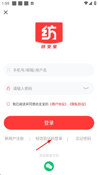 2、在登錄頁面點(diǎn)擊短信驗(yàn)證碼登錄選項,切換到短信驗(yàn)證碼登錄的界面。