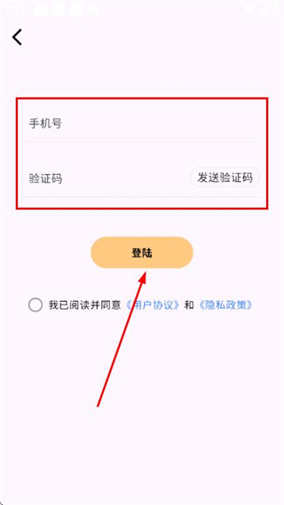 3、在登錄頁面填寫手機(jī)號和驗(yàn)證碼,勾選協(xié)議后,點(diǎn)擊登錄完成賬號登錄操作。
