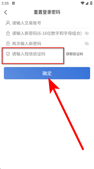4、輸入短信驗(yàn)證碼,點(diǎn)擊確定,完成密碼重置。