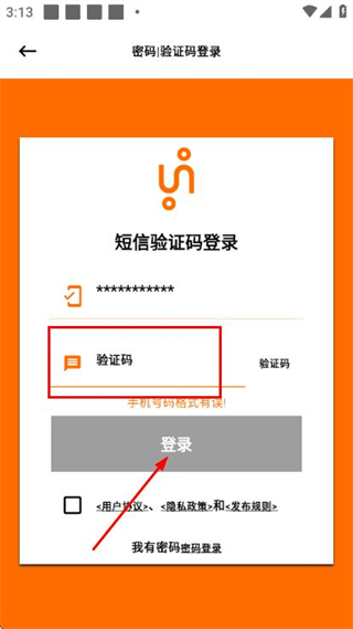 3、在驗(yàn)證碼輸入框中填寫收到的驗(yàn)證碼,點(diǎn)擊登錄完成賬號(hào)的登錄操作。