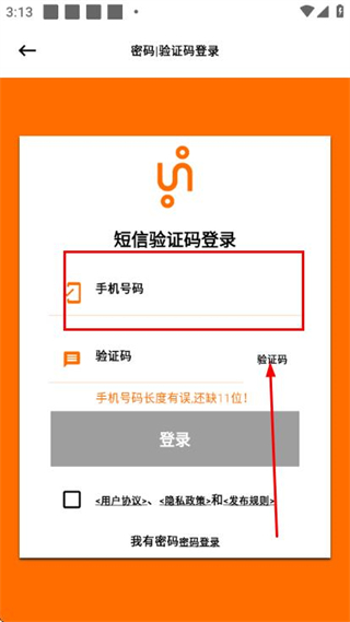 2、在手機(jī)驗(yàn)證登錄頁(yè)面填寫手機(jī)號(hào),勾選協(xié)議后,點(diǎn)擊獲取驗(yàn)證碼。