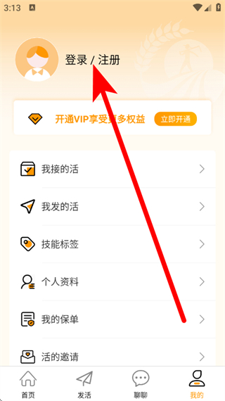 2、在個(gè)人中心頁(yè)面,點(diǎn)擊登錄注冊(cè),進(jìn)入登錄界面。