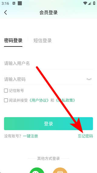 3、在登錄頁面,點(diǎn)擊忘記密碼,進(jìn)入忘記密碼頁面。