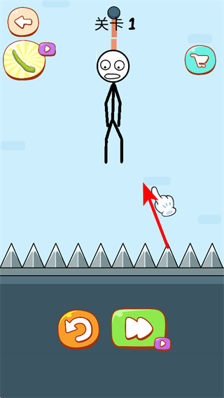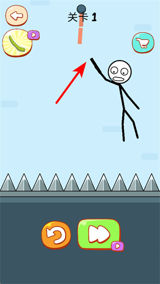 1、操控角色移動至對應區(qū)域,避開下方尖刺陷阱,同時靠近上方的懸掛裝置。