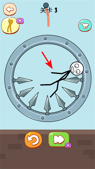 1、操控角色在帶尖刺的圓環(huán)內(nèi)調(diào)整位置,主動(dòng)拉扯參與者靠近上方懸掛裝置。