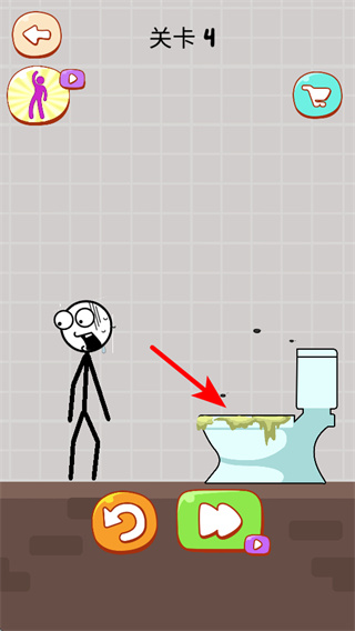 2、讓角色靠近帶有污漬的馬桶的區(qū)域,讓角色進(jìn)入馬桶內(nèi)部,完成關(guān)卡。