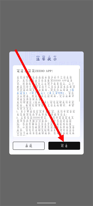 1、打開(kāi)zeeho電動(dòng)車(chē),在溫馨提示彈窗中,點(diǎn)擊同意。