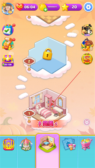 1、打開時尚房間游戲,消耗愛心數(shù)量點擊房間關卡進入游戲挑戰(zhàn)。