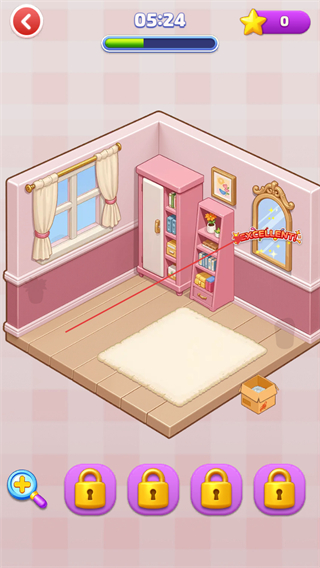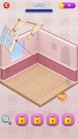 2、點擊房間內的收納箱,開啟后可以獲得房間的家具用品,同時開啟關卡倒計時。