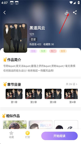 3、在漫畫詳情頁(yè),點(diǎn)擊右上角的下載按鈕,進(jìn)入章節(jié)選擇頁(yè)面。