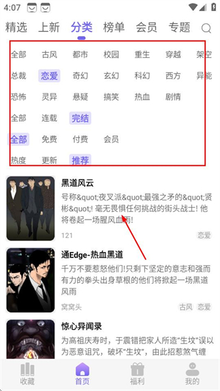2、在分類頁(yè)面篩選出目標(biāo)漫畫,點(diǎn)擊進(jìn)入該漫畫詳情頁(yè)。