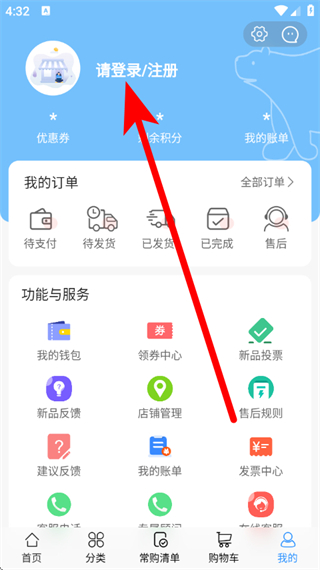 1、打開凍品到家,點(diǎn)擊底部我的,進(jìn)入我的頁面。