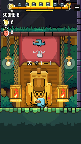 1、根據(jù)TAP-TAP提示,點(diǎn)擊屏幕控制小鳥(niǎo)向上飛行,輔助調(diào)整移動(dòng)軌跡。