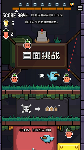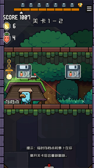 2、場(chǎng)景中的金幣、蘿卜是收集元素,臨時(shí)收集的蘿卜在離開(kāi)關(guān)卡后會(huì)重新刷新。