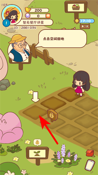 3、收獲完成后,點擊場景中的空閑田地,選中可種植的地塊,準(zhǔn)備進(jìn)行新作物的種植。