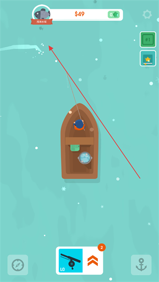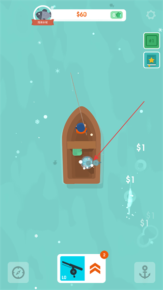 1、等待魚鉤釣到物品,獲取金幣如從$49增至$60。
