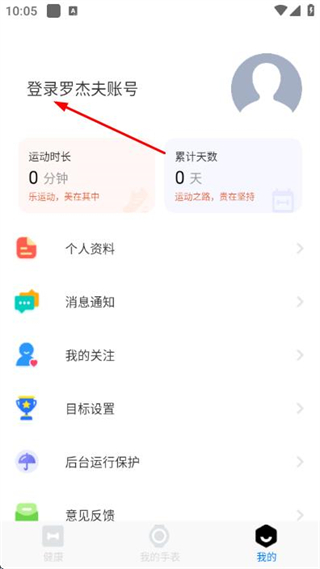2、在個人中心頁面點擊登錄羅杰夫賬號,進入登錄頁面。