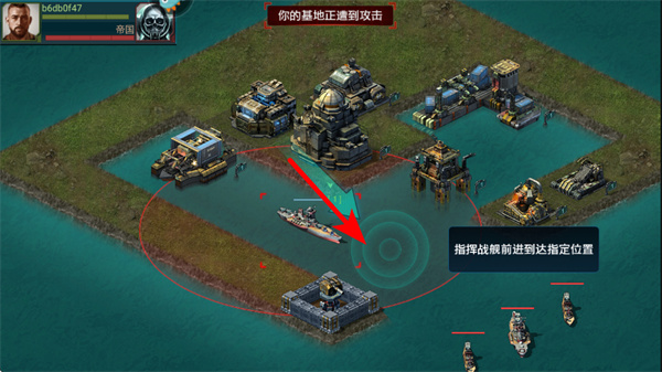 1、在基地遇襲的場(chǎng)景中,操控戰(zhàn)艦移動(dòng)到指定的作戰(zhàn)位置,完成戰(zhàn)前的部署準(zhǔn)備,為反擊做鋪墊。